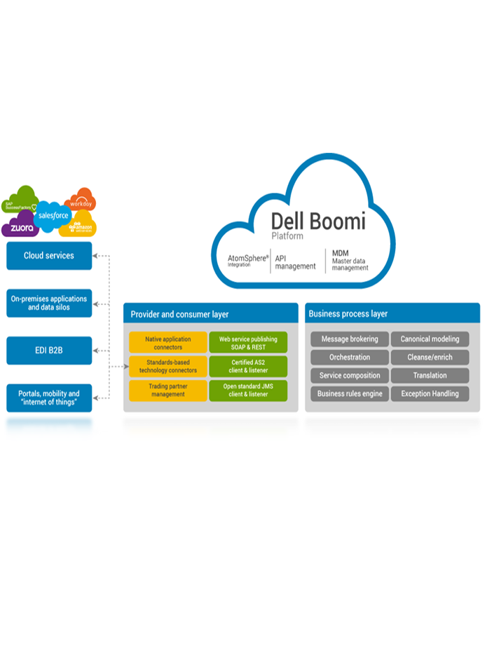 - • Providing high performance, high-availability requirements on-premises or cloud using Dell Boomi Atom